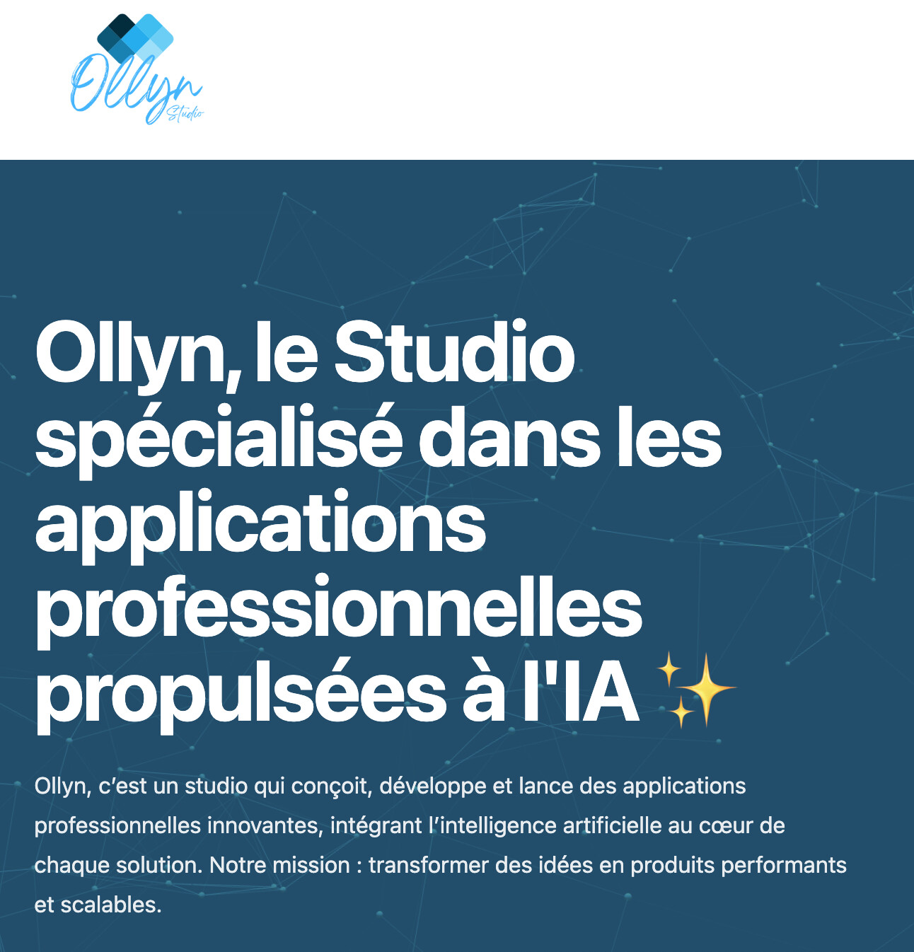 Ollyn conçoit et développe des applications professionnelles alliant simplicité, performance et intelligence artificielle. Chaque solution est pensée pour automatiser, structurer et accélérer les opérations métier.